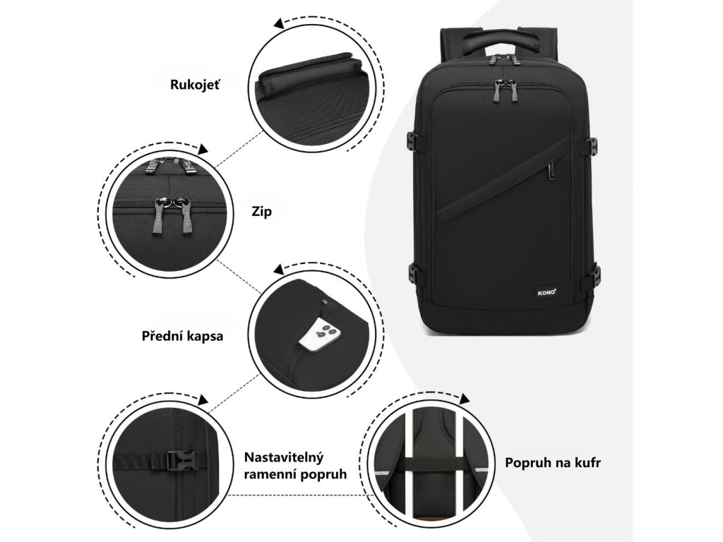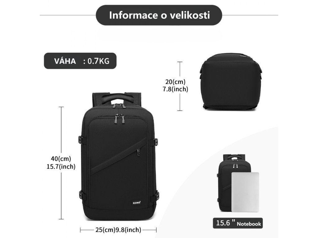 - ✈️ Perfektní do kabiny: Rozměry (40x25x20 cm) splňují limity většiny aerolinek (Ryanair, EasyJet atd.).