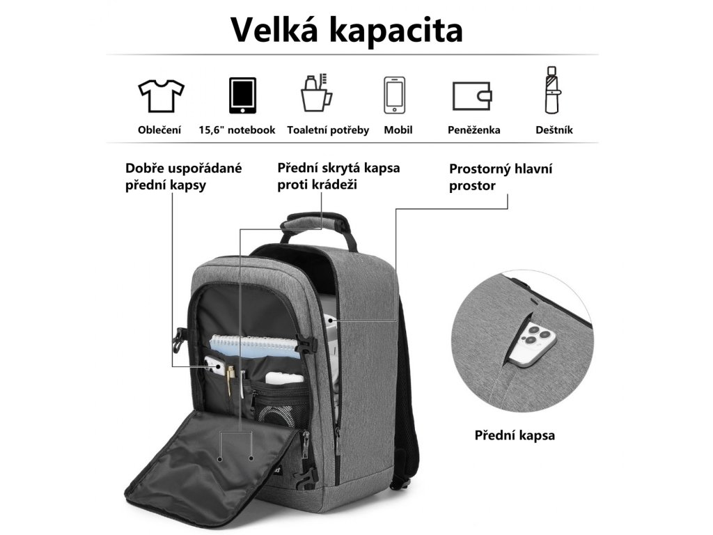 - ✈️ Perfektní do kabiny: Rozměry (40x25x20 cm) splňují limity většiny aerolinek (Ryanair, EasyJet a další).