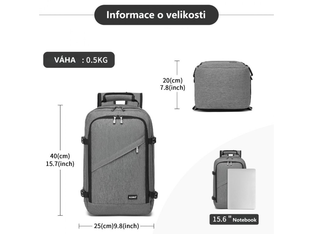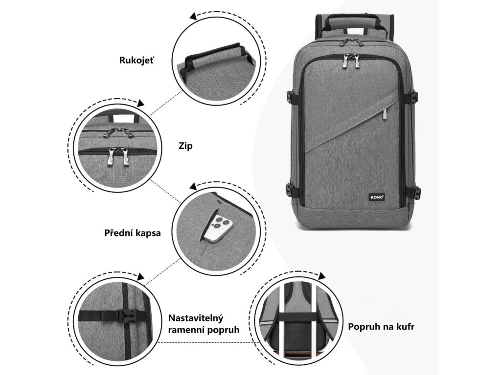 Univerzální kabinový batoh KONO BPK2531 - šedý - 20L - 25x20x40 cm