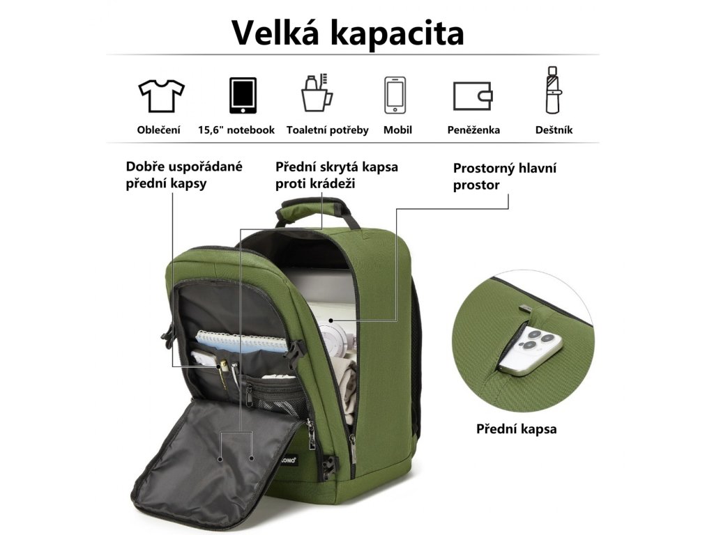 Univerzální kabinový batoh KONO BPK2531 - zelený - 20L - 25x20x40 cm