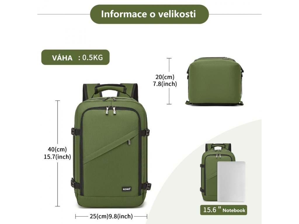 Batoh KONO v zeleném provedení je kombinací nadčasového vzhledu a praktických funkcí. Nabízí dostatek prostoru i kompaktní velikost, která splňuje rozměry příručního zavazadla většiny aerolinek. Ideální pro každodenní život, pracovní cesty i víkendové výlety.