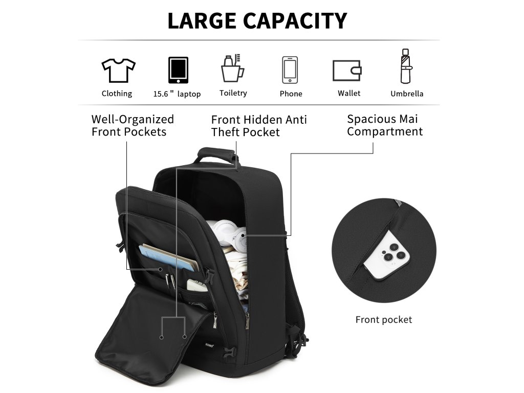 - Objem cca 37 l – dostatek prostoru pro oblečení, dokumenty i pracovní potřeby.