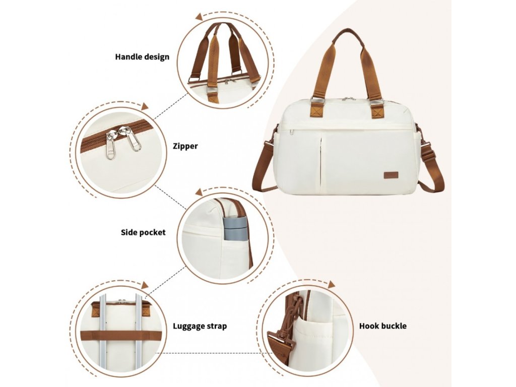 - Popruh na kufr: Pro snadné připevnění k teleskopické rukojeti při cestování.