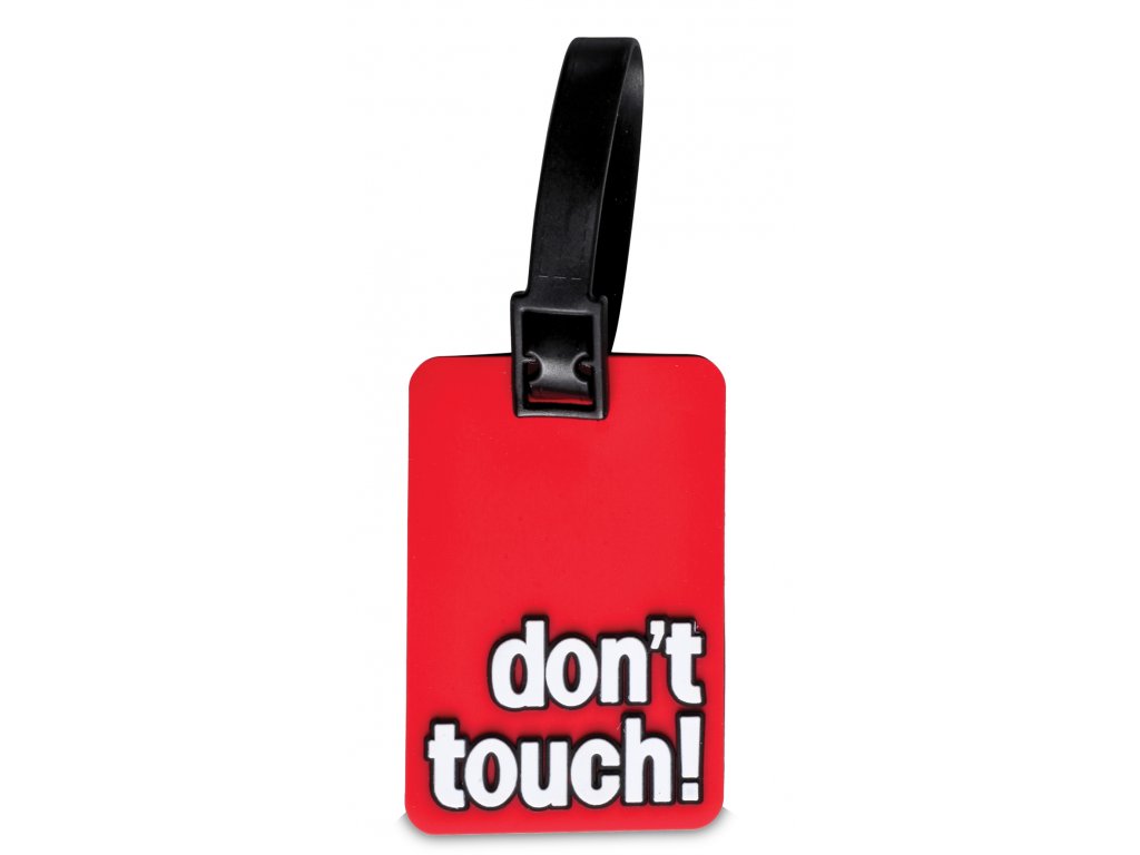Dva kusy silikonových jmenovek s originálním a vtipným nápisem don't touch! co v překladu znamená - Nedotýkat se. Označte si svůj kufr a předcházejte ztrátě nebo záměně zavazadel při cestování. V červeném provedení.