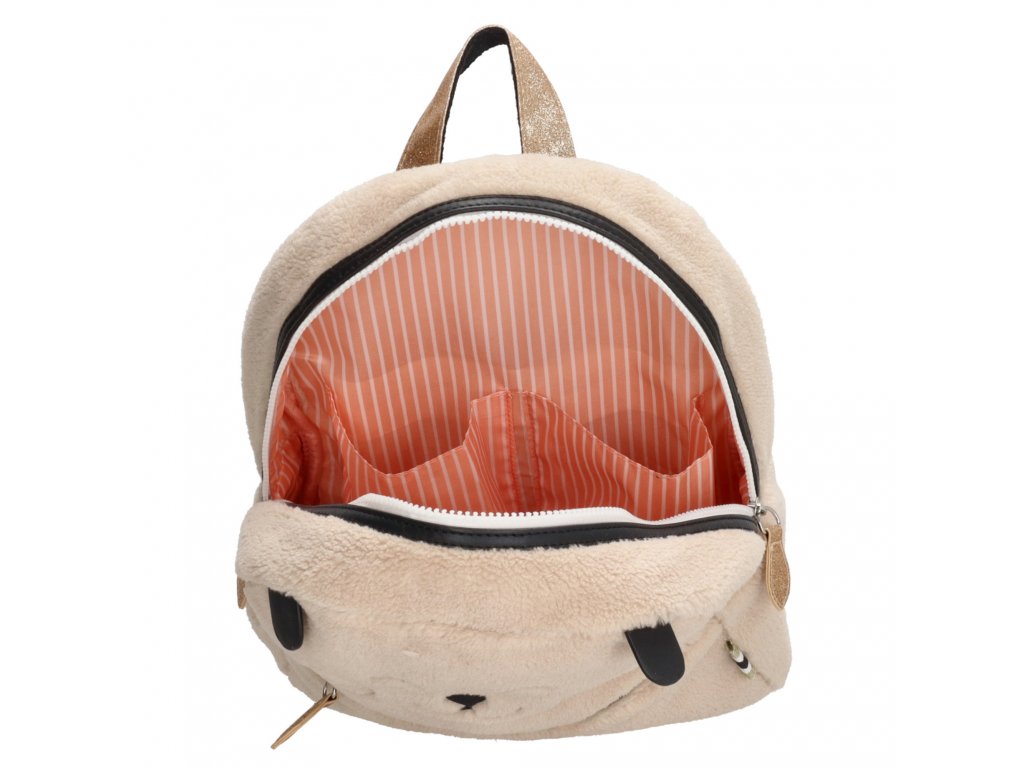 ZEBRA roztomilý dívčí plyšový batoh s tváří na přední straně. Batoh má nastavitelné ramenní popruhy a dobře organizované přihrádky které se zapínají na zip se zlatým detailem, proto je batoh stylový a praktický zároveň. V krémovém provedení.